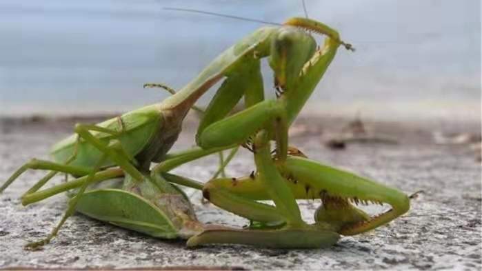 螳螂作为大自然中的一种昆虫,在农村也很是常见,无论是农田里还是果树上,都能够见到螳螂的身影。螳螂在交尾后,雌性螳螂有把雄性螳螂当作食物吃掉的习性,相信很多人也都听说过,因此也令人感到非常奇特,对螳螂这种昆虫充满着神奇的色彩。