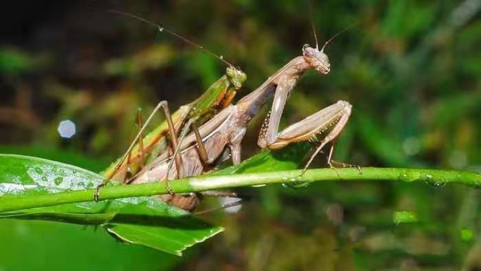有的雄性螳螂还具有识别雌性螳螂是否饱食或饥饿的能力,那些聪明的雄性螳螂,还会主动献出自己的食物给雌性螳螂吃,也是能够让雄性螳螂交尾后,避免被吃掉很重要的因素。
