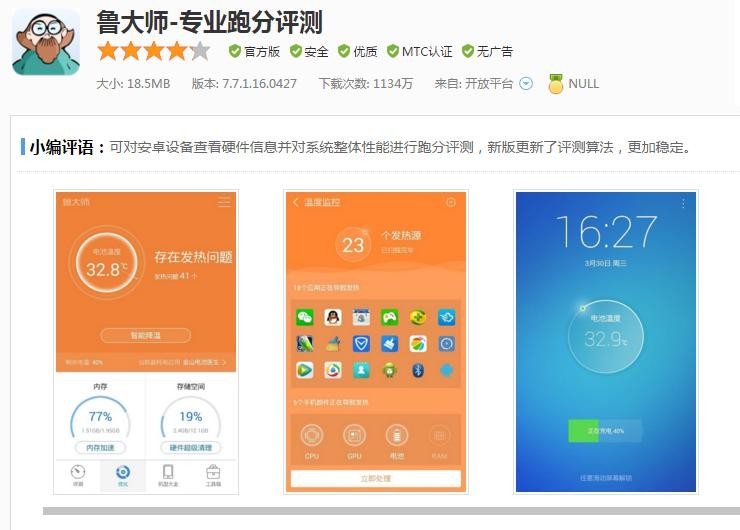 从PC时代开始,鲁大师就开跑了,安卓时代相当长一段时间落后于安兔兔,目前鲁大师可以检测硬件,清除垃圾,也可以跑分,是一款不错的参考软件。