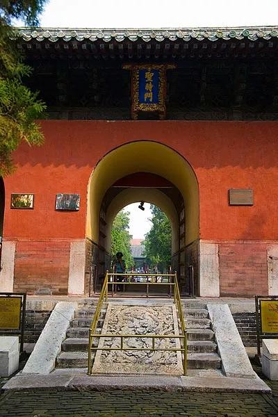 在孔庙孔桥桥南的东西两侧,甬道相连的两桥,东边,名为快睹门,取自李渤如景星凤凰,争先睹之,一为先睹为快之门,西边门为仰高门,取自论语中,仰之迷高,赞颂孔子的学问高深,他是孔庙中的第二道偏门过去,只有皇帝祭祀时才可以走正门,一般人只能从仰高门进入。