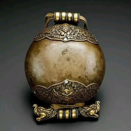 嘎乌是藏语的音译,指护身的盒子,由佛盒演变而来,通常被制成小盒型,用以佩戴于颈上,龛中供社佛像,印着经文的稠片、舍利子或由高僧念过经的药丸,以及活佛的头发、衣服的碎片等。作为护身、减少业障和增长修行之用。现已成为藏族女子必不可少的重要饰物。