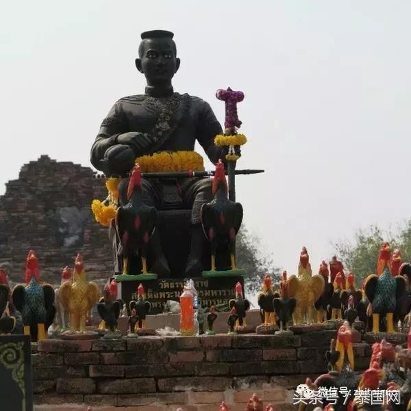 传说,泰国大城王朝的“武神圣君”纳黎萱大帝十分喜欢斗鸡,在被敌国扣押为人质时,曾经与缅甸王子进行过一场斗鸡比赛。从此斗鸡在泰国大为盛行,直到现在泰国人都喜欢用斗鸡塑像来供奉纳黎萱大帝。