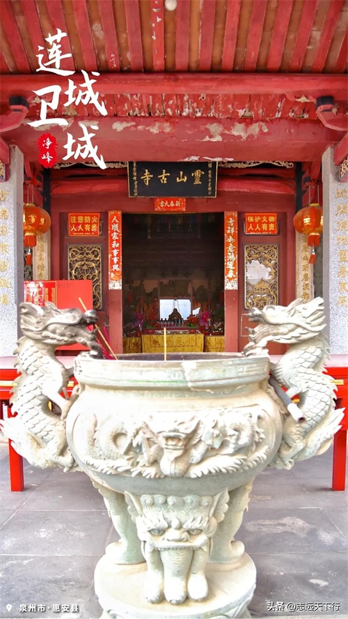 莲城卫城依山而建,如今仅存南门和部分城墙,门旁还有一对憨态可掬的石狮子。城中仅有一座古寺——灵山古寺,位于卫城山冈上,扼守斗尾要塞,俯瞰东溟,风光如画。现存建筑为清朝末期和民国年间所建,正殿主奉“观音妈”,当地人称之为“城顶妈”。