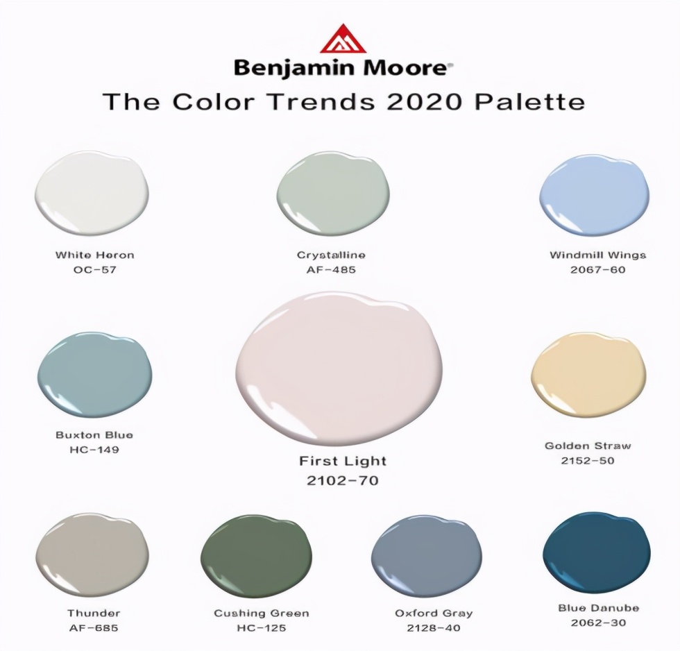 首先我们来了解一下流行色有哪些。上面是2020流行色调色板,都是专业设计师选出来的颜色。这些流行色看上去和谐又自然,是墙漆颜色的好选择。