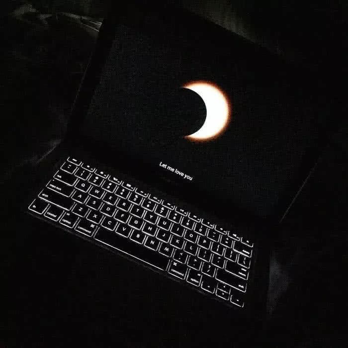 这个背景图是十分好看的,简单的这么一看,还以为是会发光的键盘的上面有着一轮弯弯的月亮呢,其实,这是一个打开着的笔记本,看见的月亮还有那一行的小英文都是笔记本的壁纸,键盘还是那个会发光的键盘,看起来是不是高大上了许多呢?