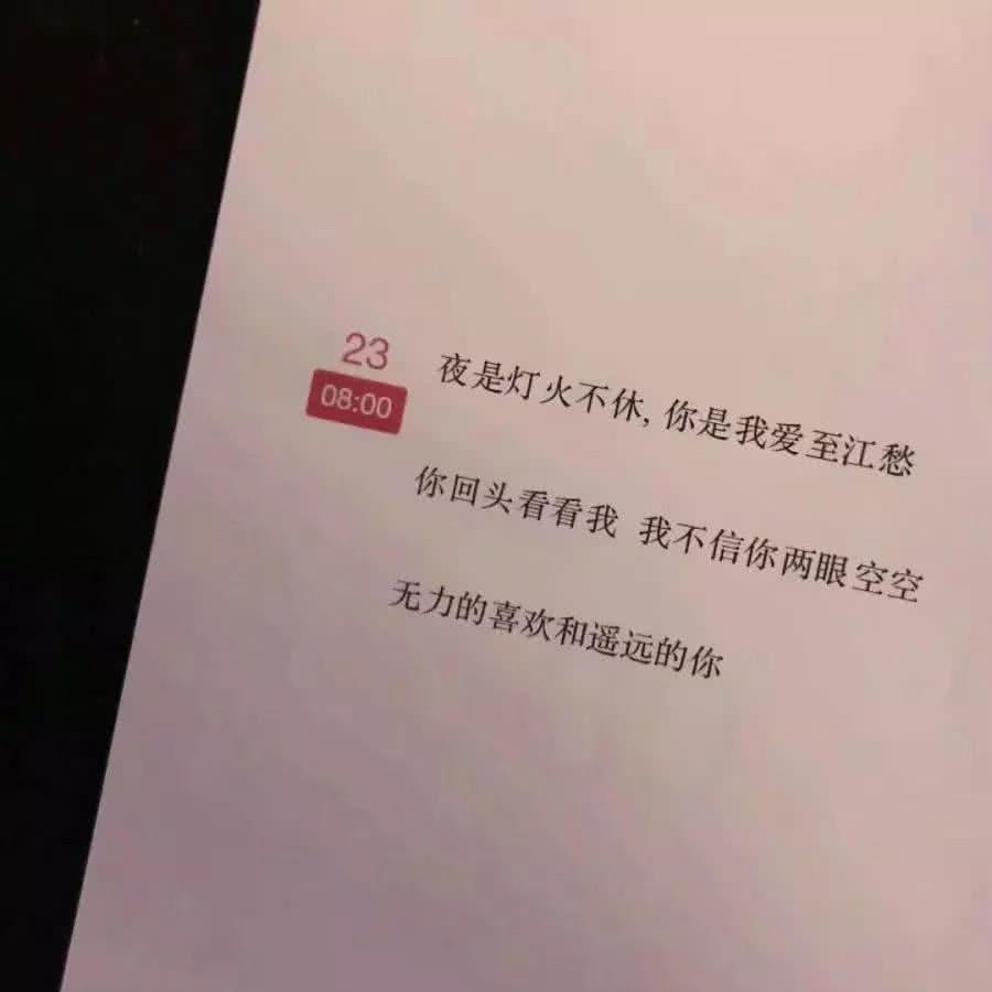 书本是我们在上学的时候经常看的,那在大了之后就不怎么看书了,有的时候看见书上的一句话就会开始感慨,那这张图上的是一段比较无力的话,夜晚是如约到来,不会休息,你是我一眼就看上的,到现在是深爱,但是你走的那么的快,将我落下了好远,在你的面前我就是那么的卑微,卑微的我,无力喜欢遥远的你。