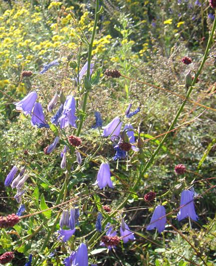 花序通常不分枝成假总状花序,或成窄圆锥花序,花梗极短;花萼有短柔毛或无毛,花萼筒部倒卵状,裂片窄长;花冠宽钟形,蓝色或紫色,8-10月开花;
