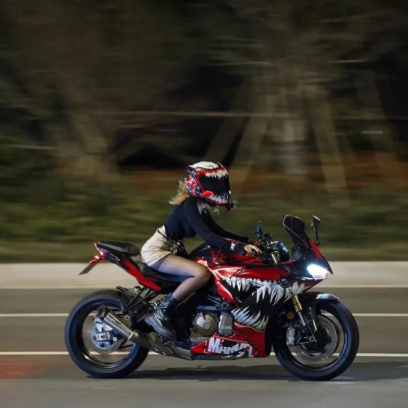 受机车带来的速度与激情的同时,切记,安全永远是我们不可忽视的问题。每一次骑行前,女孩们都会仔细检查装备与车辆状态;在骑行过程中,她们严格遵守交通规则、保持高度专注;面对紧急情况,她们能够冷静应对、妥善处理。正是这份对安全的重视与执着追求,让她们能够更加安心地享受机车带来的乐趣与自由。