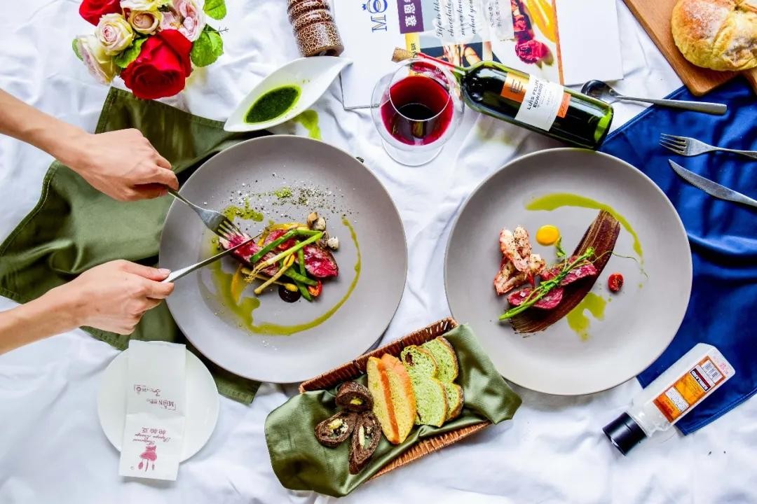 前菜、餐汤、副菜、主菜、沙拉、甜品、饮品。