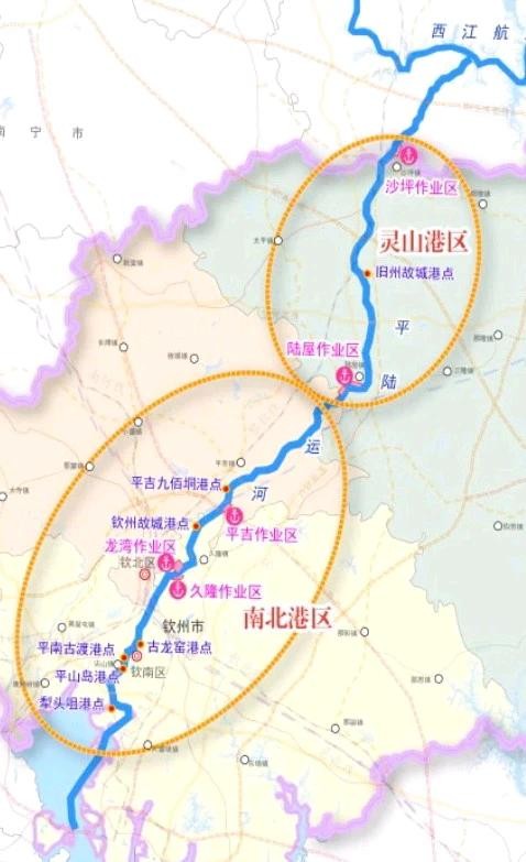 平陆运河钦州段和陆屋、沙坪位置图