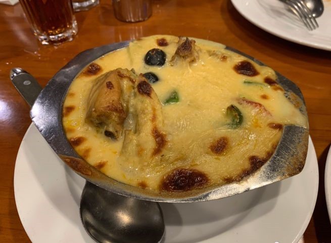 葡国鸡是一道颇为有趣的菜式,它是亚洲人自行研发的一道欧洲菜,食材主要是鸡肉、土豆、洋葱、大蒜、鸡蛋、牛奶、椰奶、黄姜粉和咖喱粉经过腌制、炒制和烘烤而成。