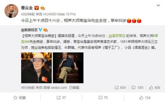著名相声表演艺术家常宝华去世 多人发文缅怀