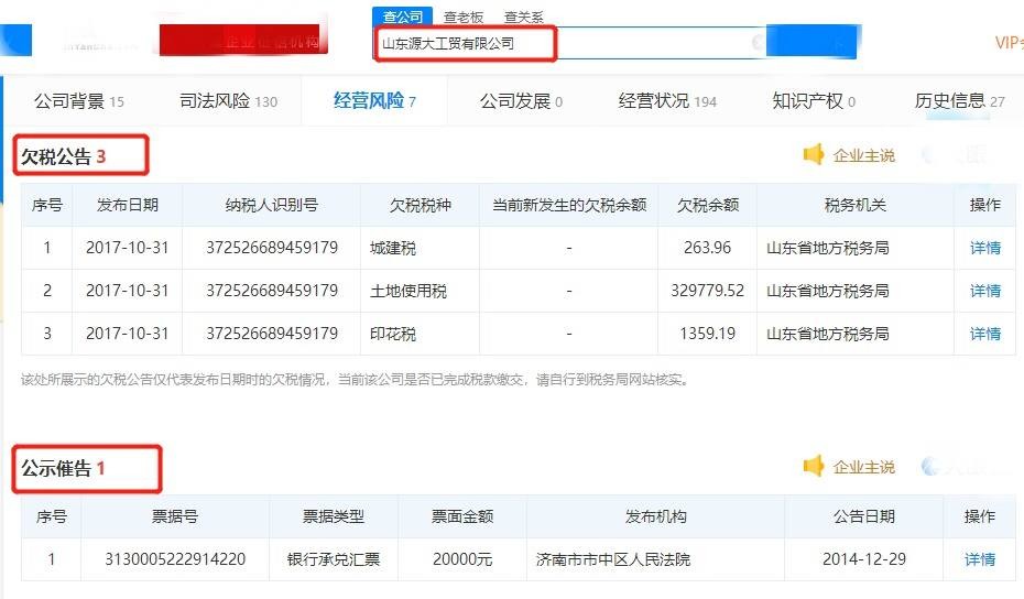 这家公司有5条失信信息,3条欠税信息,还有9条限制消费令。