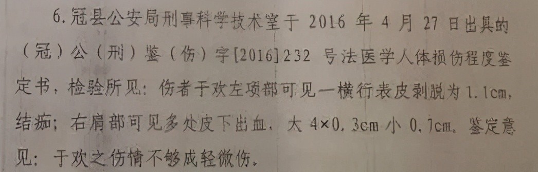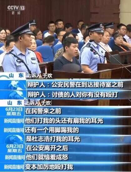 于欢说杜志浩等人变本加厉地殴打自己,但伤情鉴定结果显示不构成轻微伤。