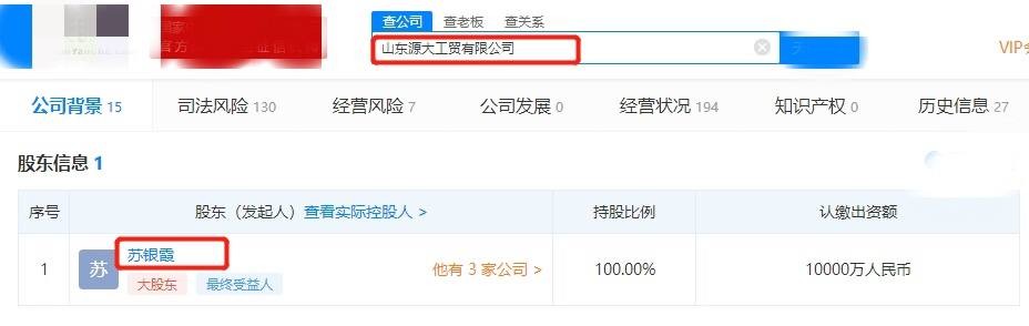 据资料显示,于欢母亲苏银霞于2009年成立了山东源大工贸有限公司,注册资本一亿元,苏银霞是公司的唯一大股东。