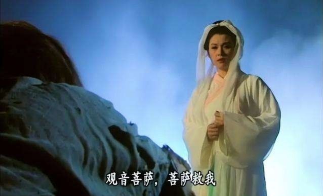 当月亮升到中天的时候,他忽然看见一个白衣女子从迷雾中冉冉走近……林间草丛,白雾瀰漫,这白衣女子长发披肩,好像足不沾地般行来。她的脸背着月光,五官朦朦胧胧地瞧不清楚,但段延庆于她的清丽秀美仍是惊诧不已。他只觉得这女子像观音菩萨一般的端正美丽。心想,“一定是菩萨下凡,来搭救我这落难的皇帝。圣天子有百灵呵护。观世音菩萨救苦救难,你保佑我重登皇位,我一定给你塑像立庙,世世供奉不绝。”