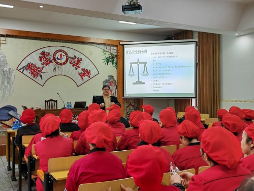 培训开始,食品安全专家深入浅出地讲解了食品安全的基本准则和操作规范,涵盖了从食材采购、储存、加工到烹饪各个环节的关键要点。特别强调严格遵守食品卫生标准及防止交叉污染的重要性,要求食堂从业人员时刻保持高度的食品安全意识,确保每一道工序都符合规范要求。