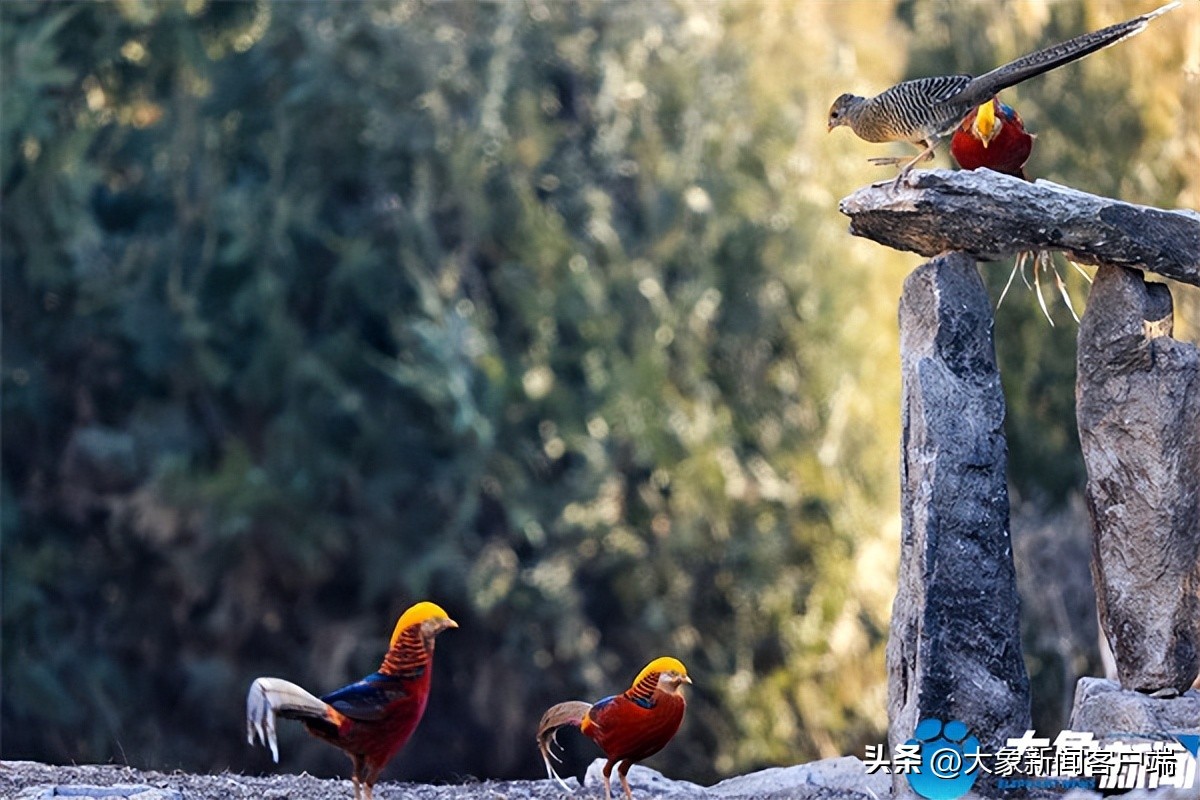 连日来,开封摄影爱好者在南太行蹲守多日,终于拍到红腹锦鸡的神秘身影。在山坡上,它们出没于矮树丛间,夜晚栖于树冠隐蔽处,白天下树在地上活动。冬季的山间,食物匮乏,它们便前往农田觅食。时而欢舞、时而觅食,优美的舞姿给新春增添了一份吉祥如意。