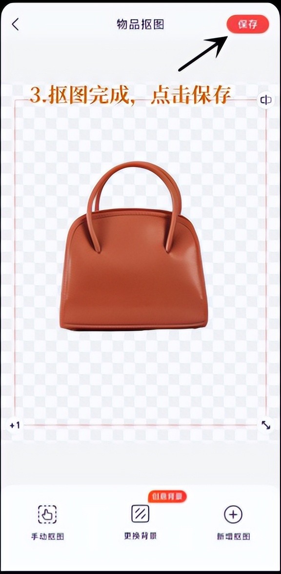 第三步:等待AI智能抠图处理图片,很快就可以看到抠除背景的图片了,点击保存,把图片保存到手机即可。
