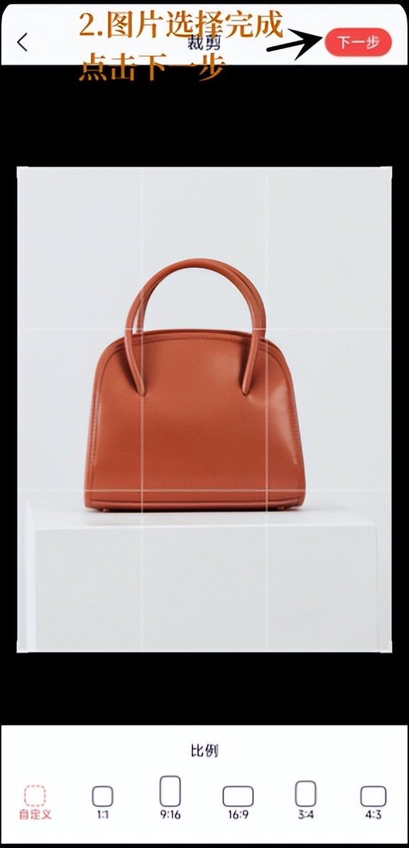 第二步:选择完成后,调整图片的比例,点击【下一步】。
