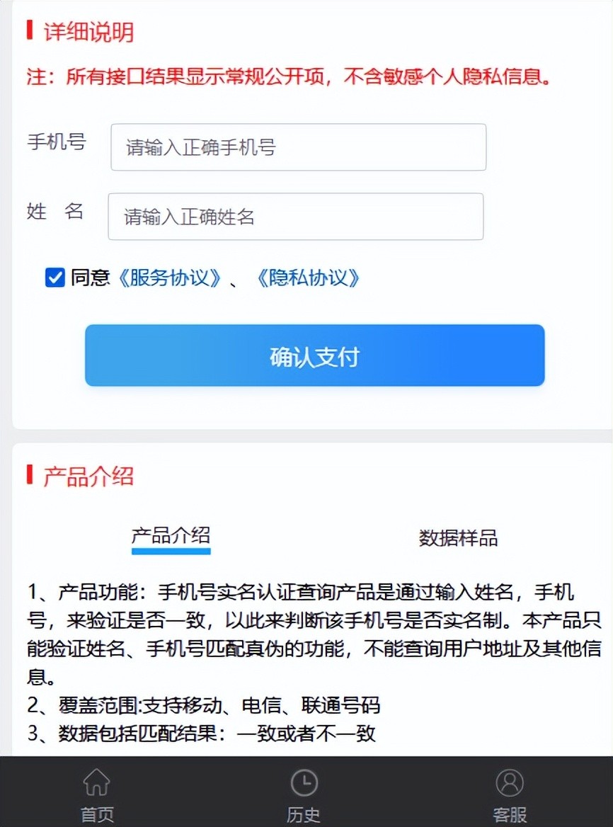 答:不能,只能验证姓名、手机号匹配真伪的功能。不能查询用户地址及其他个人隐私信息