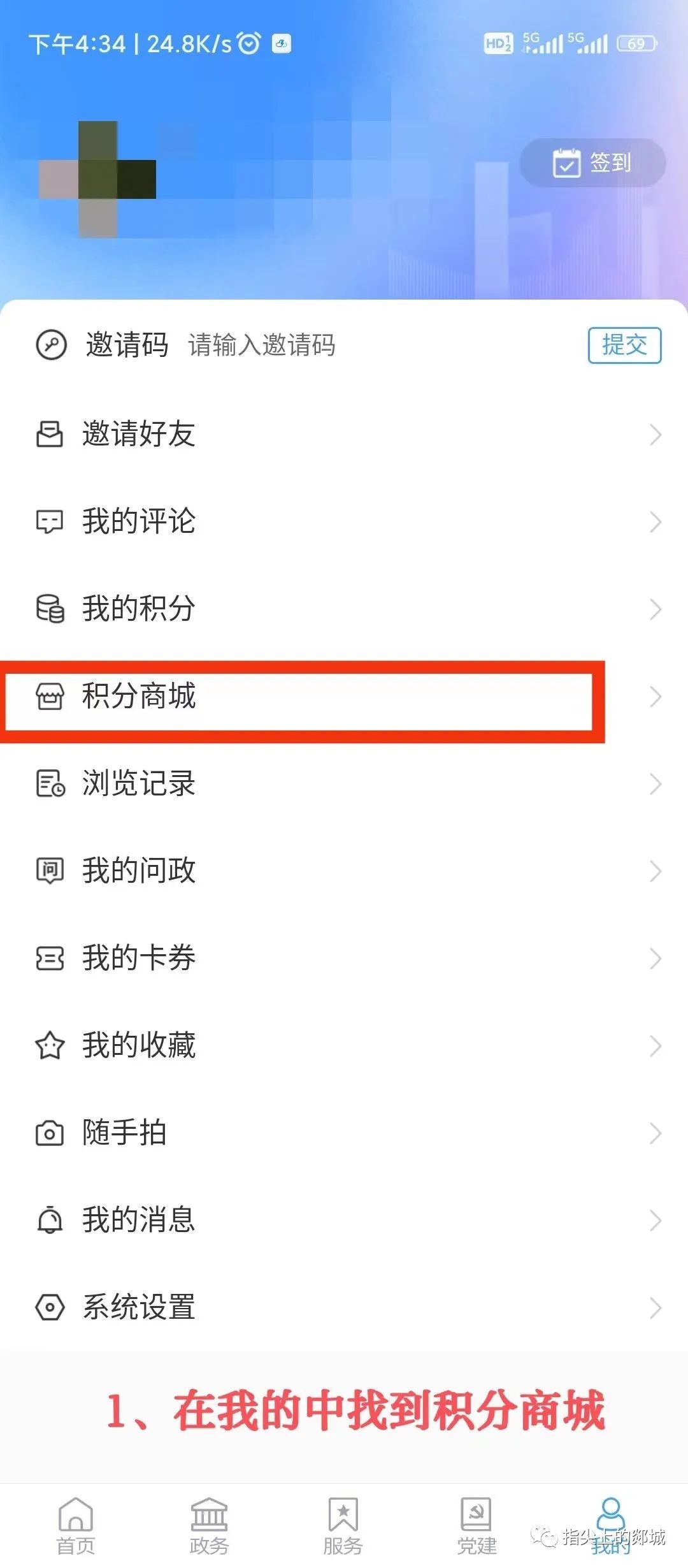 在“郯城首发”APP中找到“我的积分”每天进行签到、阅读新闻、评论新闻、点赞新闻、分享新闻等即可获取积分