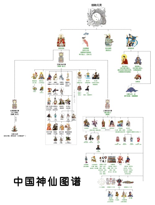 创始元灵收了四个徒弟,神仙界的诸多大腕都来自这四位门下,称为第一代神仙: