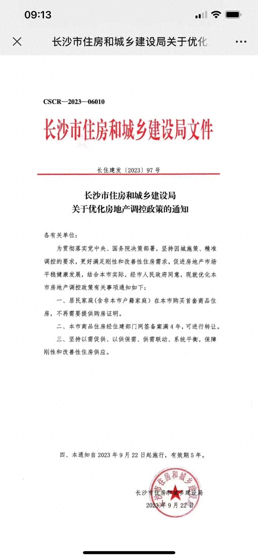长沙市在9月22日发布了一份关于优化房地产调控政策的通知,对部分房地产限购、限售政策进行了调整。