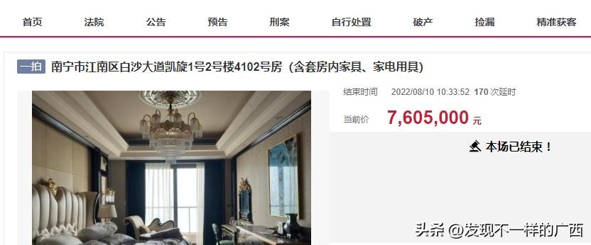 前段时间,写了一篇关于南宁市第一豪宅凯旋一号两套房产被拍卖文章,当时还有很多人觉得会流拍,因为一套房产起拍价高达1152万元。不过8月10日,这两套豪宅迎来拍卖日,结果出乎很多网友的预料,房子最终是以高价成交的,而且竞争还非常激烈。