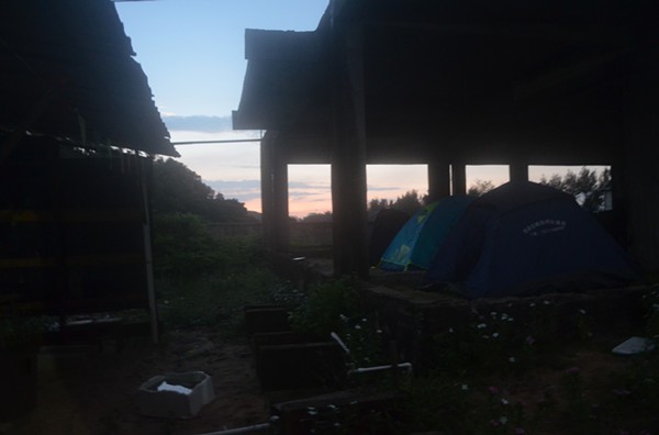 次日凌晨,海边的帐篷都消失了,不是搬家蟹干的,而是因为半夜一点的时候打雷下了小雨,所有的帐篷被要求转移到棚子内,两点的时候,伴随着蚊子的乐声入睡 (不知道有几个睡着了......)五点醒了,怀着激动的心情去看日出。