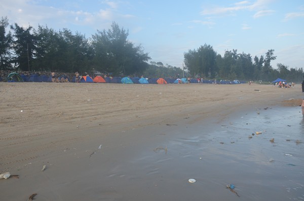 沙滩露营点,海边的漂浮的杂物不少,感觉这边没有什么人来清理。