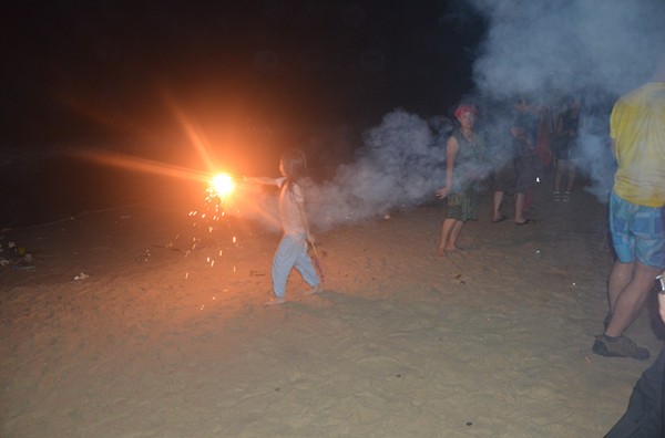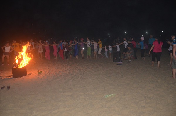 夜晚,吃过烧烤之后开始我们的篝火晚会,小朋友拿着烟花,大人们则围绕着篝火起舞。