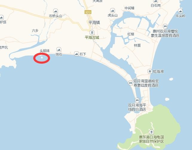 从深圳市区出发,约2小时左右到达平海镇,上图所示的红点即为狮子岛了,目前附近的沙滩尚未完全开发,酒店和海鲜倒是不少,很多还在建设当中,沿着海边的行车道坑坑洼洼,如同被啃过一般,跨出两步路找不到一块平坦的地方。晕车的朋友需要特别注意了,不管是大车小车,坐上去摇摇晃晃的,实在不舒服的可以下来走的,不比车开的慢。