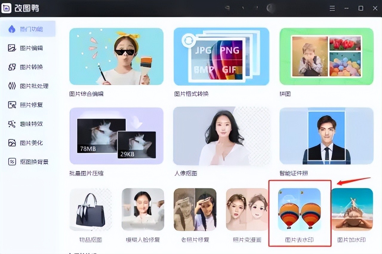 步骤一:首先打开软件,选择图片去水印功能