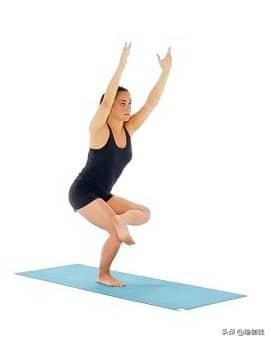 开始站高,双脚分开与臀部同宽。弯曲膝盖,臀部向后坐,就像你要坐在椅子上一样。把手臂举过头顶,帮助保持平衡。将重心移到左腿上,右腿向胸部靠拢,将右脚踝交叉放在左膝上。保持这个姿势10到30秒,让右膝盖自然地张开。另一条腿重复这个动作。