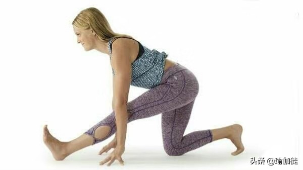 修改:在接触地面的手下面放一块瑜伽砖,如果你的四头肌很紧,用瑜伽带把你的后脚拉向你。