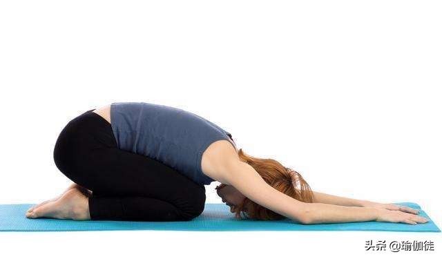 跪在垫子上,把你的大脚趾碰在一起,摆出婴儿的姿势。坐在你的脚跟上,拓宽膝盖,使它们与臀部同宽。呼气,将胸部朝大腿之间的地面放低。把手臂伸到身体前。当你在这里休息30到60秒的时候,感受你的四头肌、下背部、臀部和肩膀的伸展。