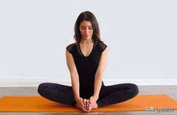 坐在垫子上,脊柱挺直。呼气,弯曲膝盖,把它们拉向腹股沟。让你的膝盖向一侧倾斜,脚掌压在一起。感受你的臀部和大腿内侧的伸展。如果你能走得更远,把你的脚拉到离腹股沟更近的地方,握紧脚踝或大脚趾。保持30到60秒。