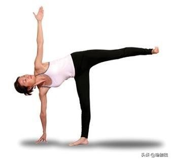 在垫子上保持一个宽的站立姿势。将右脚向前转到垫子的前面,并将左脚微微内翻。双臂向两侧伸展至肩膀高度。伸手向前伸过你的右腿,让你的右手放在地板上或脚踝上。抬头看左手掌。你可以保持三角式,或者改变你的重心,把你的右手放在你右腿前面的地面上。抬起左腿,保持脚弯曲,直到它与你的上肩对齐。打开你的躯干,保持目光向上,打开胸部。在这里保持5到6次呼吸,然后放低,在另一边重复。