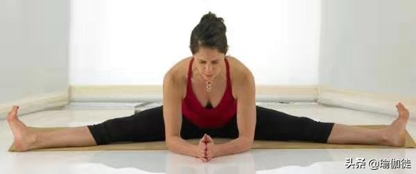 首先做一个深蹲,双脚呈45度角。把臀部向脚跟下压,然后把脚伸出来,直到上身不再靠在大腿上。双手放在地面,右腿向两侧伸直,臀部向左脚跟下沉。如果可以的话,把你的双手放在胸前祈祷,然后屏住呼吸3到4次。在另一边重复。