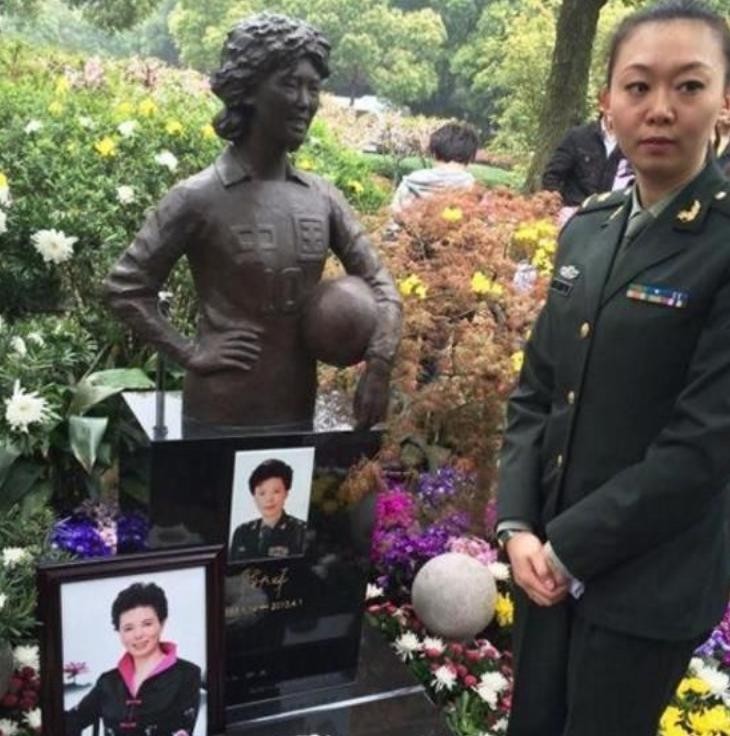 而她墓碑上的照片依旧是当年怀抱排球的半身照,家人们还在墓碑旁摆放了很多曾经她的生活、训练照片,这位铁娘子依旧有着爽朗的笑容以及飒爽的英姿。