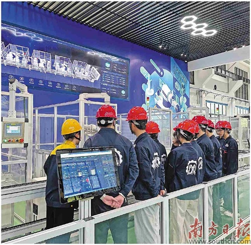 走进深圳信息职业技术学院工业软件产教融合创新中心,一条集加工、贴片、组装于一体的高度集成制造产线正在运行,这是对标企业标准搭建的智能制造场景。