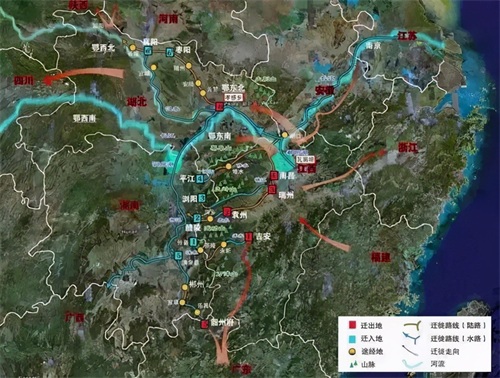 这大大削弱了西晋王朝抵御外敌的能力,最终导致了五胡乱华的发生。这一时期中原大地成为五胡部族角逐的战场,一时间大量农田荒废,汉人被掳掠为奴。长年的战乱使中原百姓生活困顿,人吃人的现象开始涌现,一些不堪压迫的中原百姓为了生存由中原经河南南阳进入襄阳,然后沿汉水入长江向东迁往湖北、安徽、江苏一带;向南则由九江到鄱阳湖或顺赣江进入赣南山区。