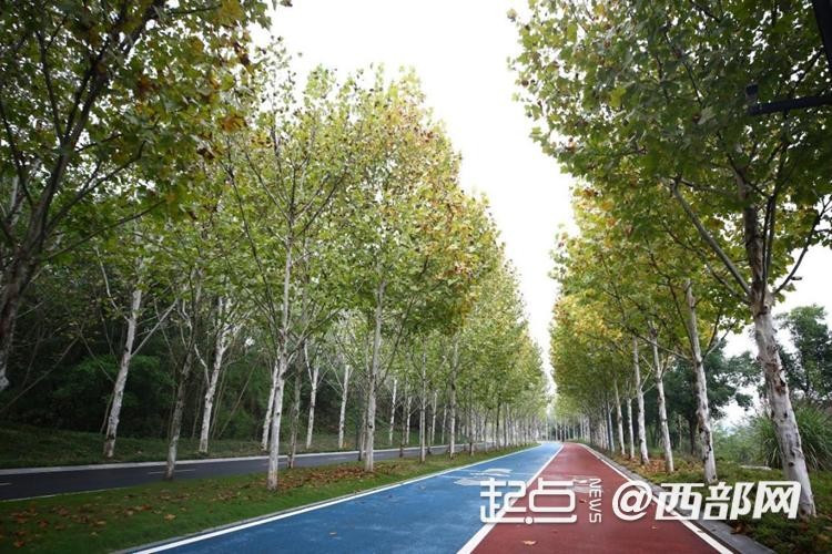 踏上广阳岛,一眼便看见道路两旁的梧桐由幽静的翠绿转为半隐的淡黄,风一吹动,落叶旋转从枝头飘落,好像岛上的冬天也迟来了一些。