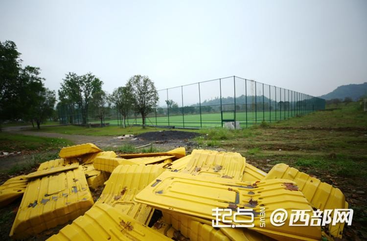 广阳岛南侧的篮球场地与人造草足球场地大门紧锁,周边杂草丛生,已闲置多时。