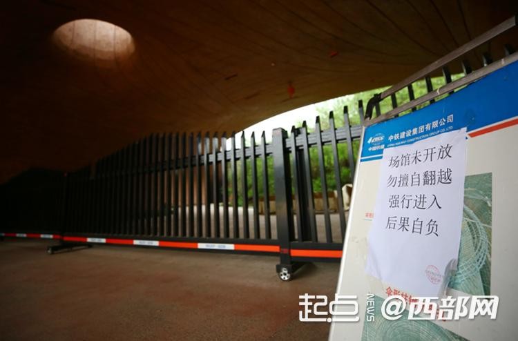 “重庆最美艺术馆、广阳岛上的一艘异星飞船、像进入了宇宙神秘空间……”在社交媒体平台上,重庆广阳岛大河文明馆已成为岛上的热门打卡点。然而记者来到大河文明馆时发现,该馆大门紧闭,多处贴有10月28日落款为大河文明馆项目部的“场馆未开放”告示,展馆南侧的项目部人迹寥寥,未有任何施工迹象。