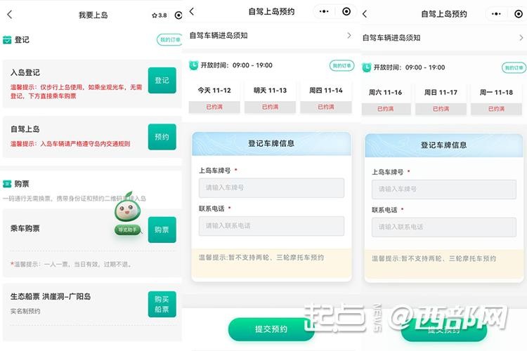 广阳岛小程序上岛登记页面,记者多次尝试,自驾上岛均已约满。