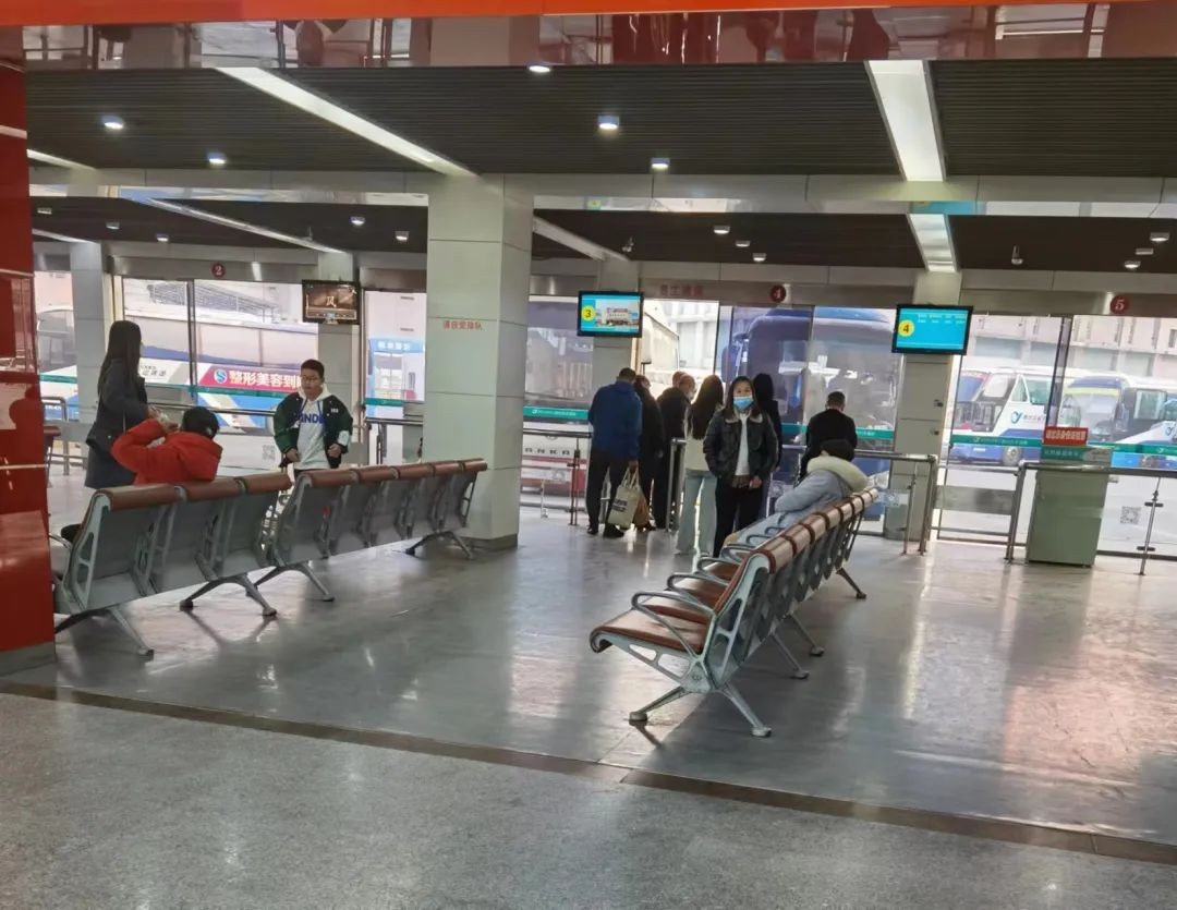 候车大厅内旅客三三两两的散坐着,不知道什么时候开始,检票甚至不需要排队了,去往蓬莱机场的大巴车检票口,为数不多的人正在登车,准备前往机场。