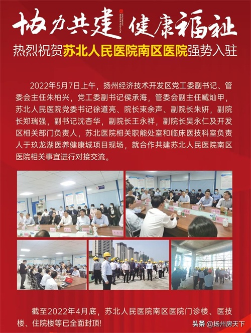 近日,扬州经济开发区与苏北人民医院于玖龙湖医养健康城,就苏北医院进驻经开区事宜进行对接交流,为扬州及经开区居民带来实实在在的健康福祉。