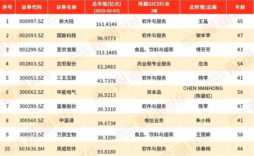 Choice数据显示,在福建10家A股上市公司的总经理是女性。其中傅芬芳执掌的圣农发展市值最高,值得关注的是,新大陆王晶董事长、总经理“一肩挑”,既负责公司战略决策,也负责公司运营。